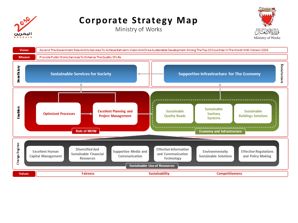 Each of these strategic objectives is expanded with a full description, supplemented by the necessary measures, targets, and initiatives, and aligned with the Bahrain Vision 2030. The owners are accountable for implementing these objectives and reporting on their strategy performance on a quarterly basis.